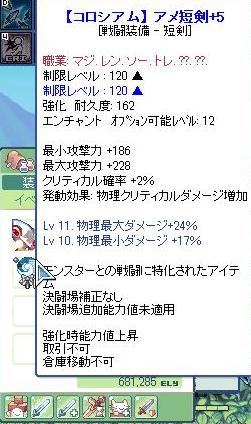 +5からクリも2%あがるので鷹10%+虎証3%+M手3%+コロアメ+2%+トマサン10%でステ表示クリ率28%とかもtkmkです。135で鳳凰+5装備すれば30%ですし、コロアメ+6にできるんでかなりモチベあがりました。