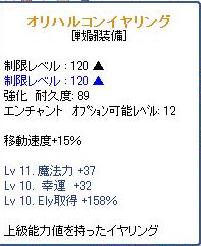 115になったのでオリ耳を素材買ってエンチャしたら