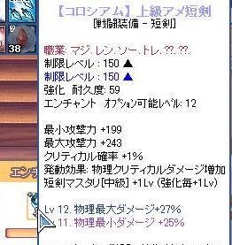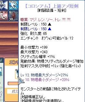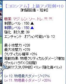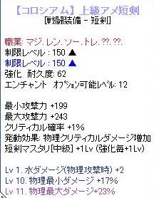 もう一本だけ交換してダメだったら虎に戻そうかと思い始めた矢先、つい2~3日前ようやく短剣レシピを拾ったので交換してエンチャしたら