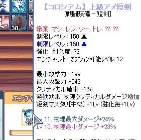 ネガブロによるとルインの短剣上級はレベル毎150ダメージ追加と今までの10倍の効果です。