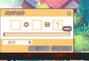 +10が相当強い武器ならここで妥協するところですが、上級+10作った友達に+10まで強化するのに150m近くかかるって言われてたので、こっちも壊してあきらめるかと思ってエンチャしたら